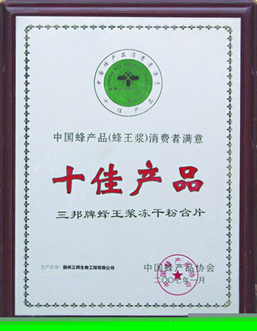 • 中國(guó)蜂產(chǎn)品消費(fèi)者滿意十佳產(chǎn)品
